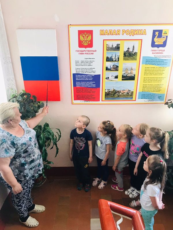 В этот день символами всех мероприятий, проходивших в нашей группе, были: флаг, герб и гимн России. На празднике ребята читали стихи о символике нашей страны, о Родине, о родном крае и счастливом детстве. В торжественном молчании стояли маленькие граждане России, когда звучал гимн страны, дети танцевали в флажками – триколор.